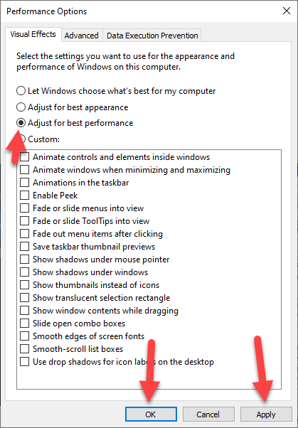 Click on the Open Step 2. Now, check the box of Adjust For The Best Performance then click on the Apply after that tap on the on Ok.
