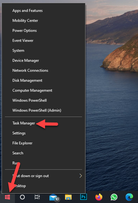 Step 1. At first, right-click on the Start Menu at the bottom left corner then click on the Task Manager.