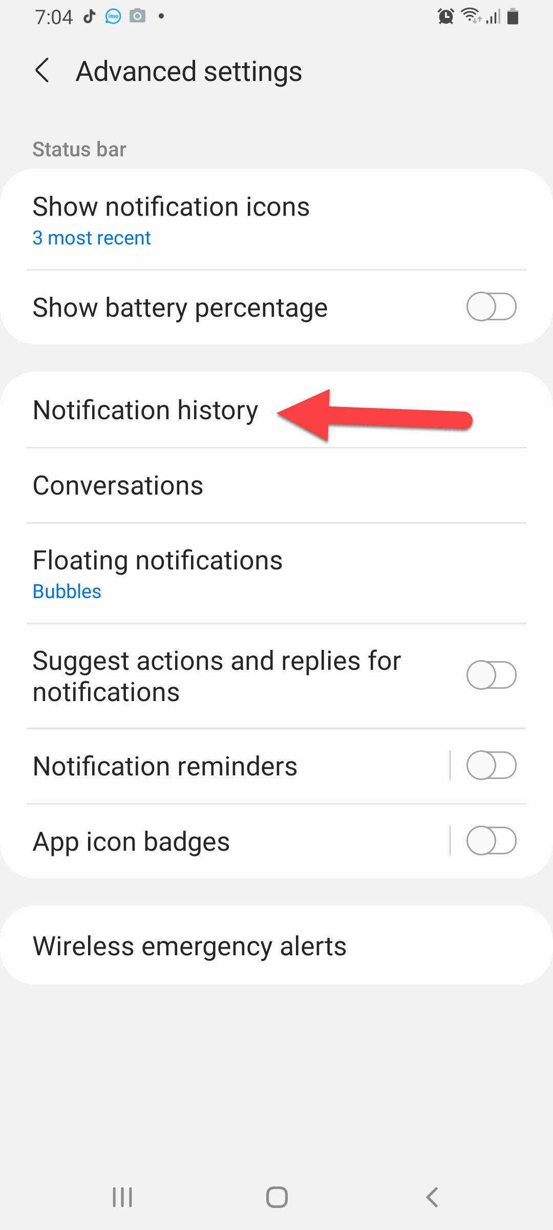 Tap on the Advanced Settings Step 3. In the section of advanced settings simply click on the Notification History.