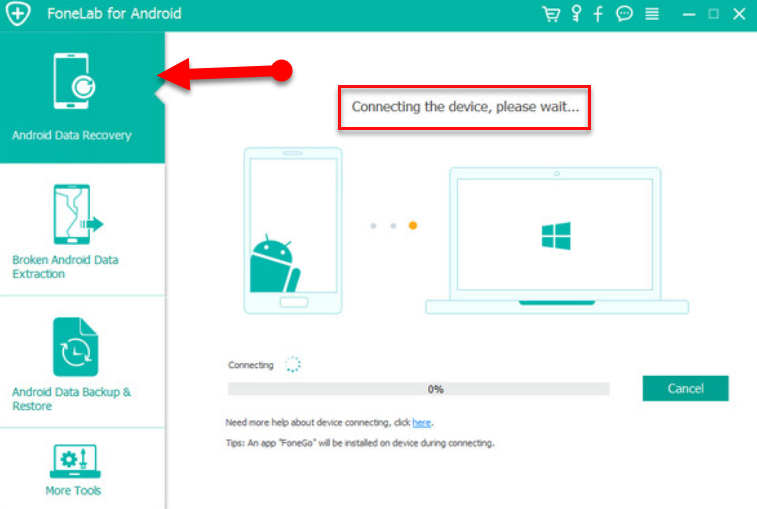 Step 1. First of all, you need to download and install the Fonelab software from the given link above. Then downloading and installing you need to launch the software by double click on that. After that, the window of Fonelab will remind you in order to connect your Oppo phone to your computer through the charger cable. When you have connected your Oppo phone then you have to choose the Android Data Recovery option from the primary interface.
