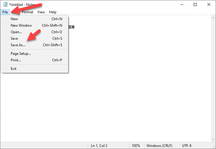 Click on the Save As Step 4. Next, set any name as you want but you need to add the extension with .bat after that click on the Save.