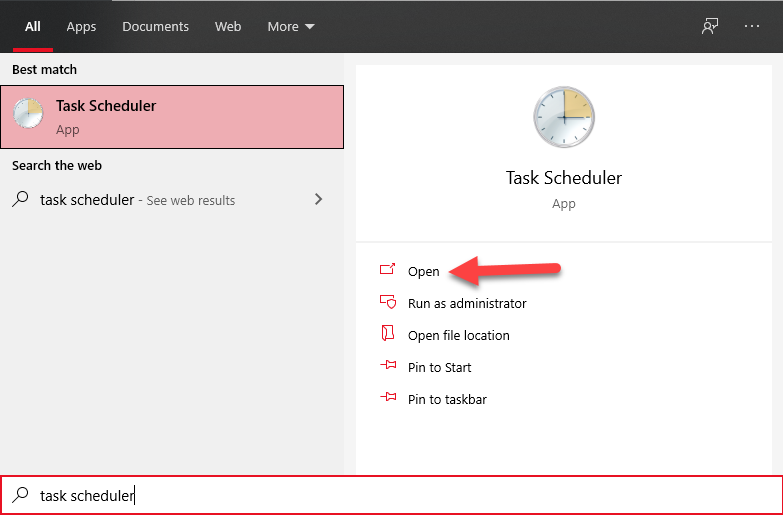 Step 1. Go to the Start Menu then type Task Scheduler after that click on the Open.