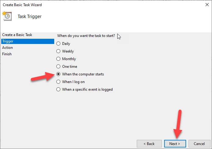 Click on the Next Step 4. Here check the When the Computer Start after that click on the Next.