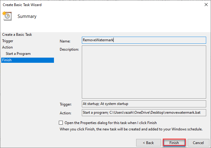 Click on the Finish Method 4: Remove Activate Windows 10 Watermark Using Regedit