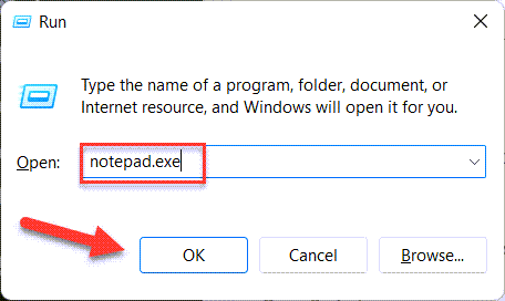 Step 1. At first, press Windows + R to open the run box then go to the search bar after that type Notepad.exe then click on the Ok.