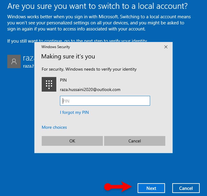 Sign in with a local account instead 4. Select your Microsoft Account and click on the Next. Now you have to type your password and click on the Ok.