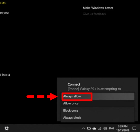 Step 7. Now, you will receive one notification that you need to click on the Always Allow.