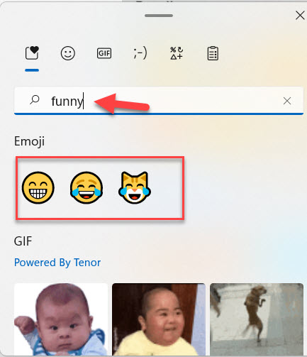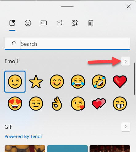 Win Key + Full Stop Step 2. Now, at the top simply click on the icon of emoji after that you will see much of emoji after that if you want to click on the Arrow to see more emoji.