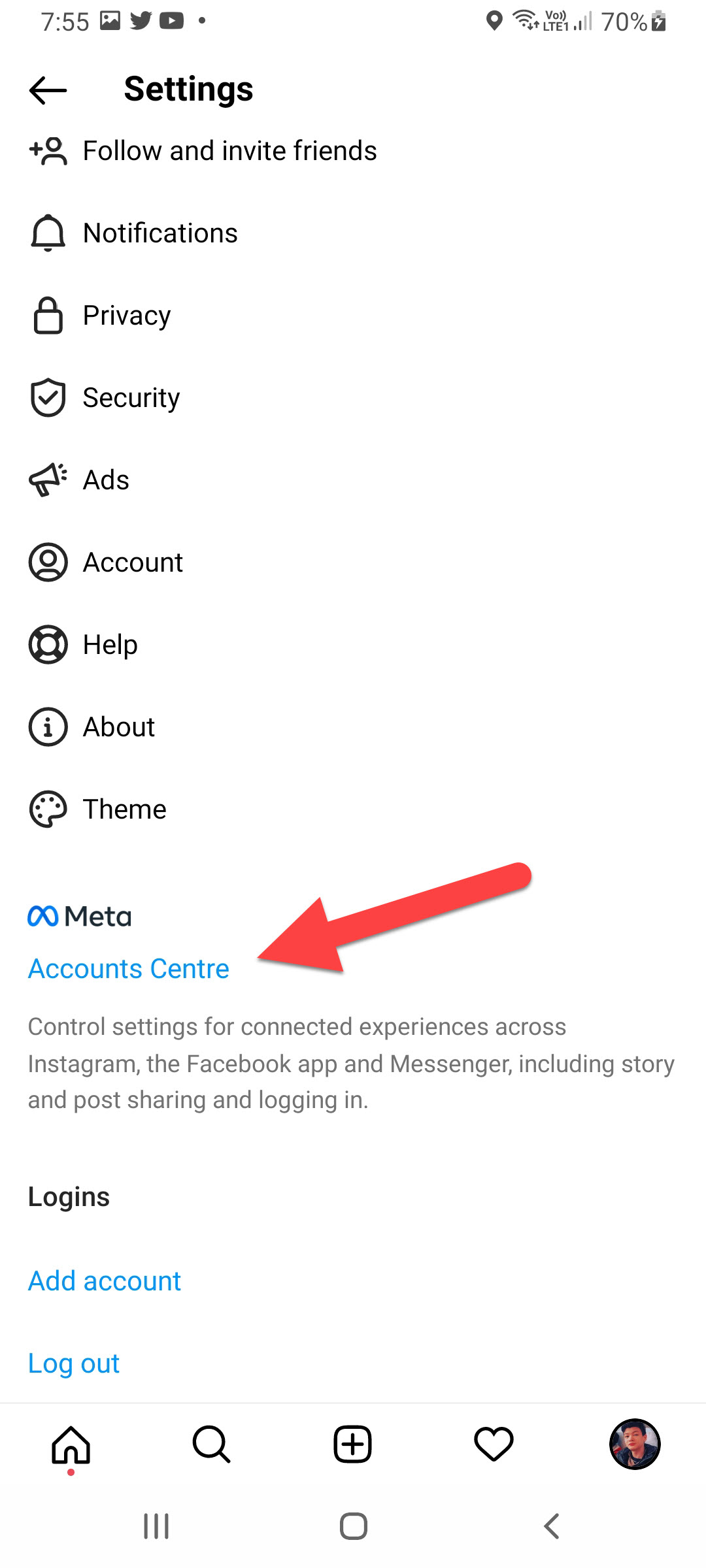 Click on the Settings Step 4. After that click on the Accounts Centre.