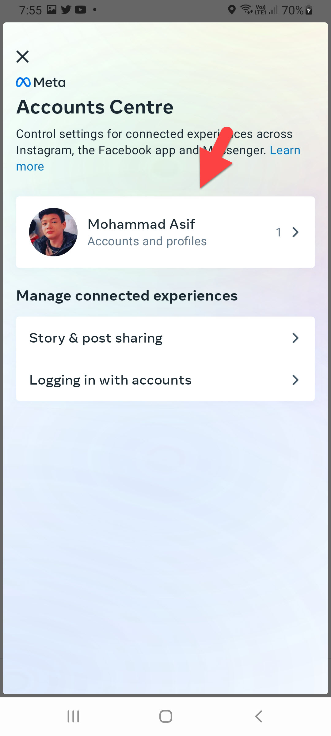 Accounts Centre Step 4. Tap Story & Post Sharing.