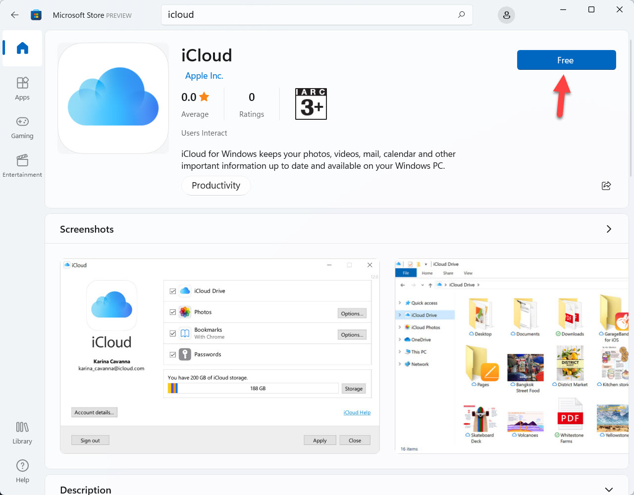 Step 2. When the Microsoft store is open then type in the search for iCloud.