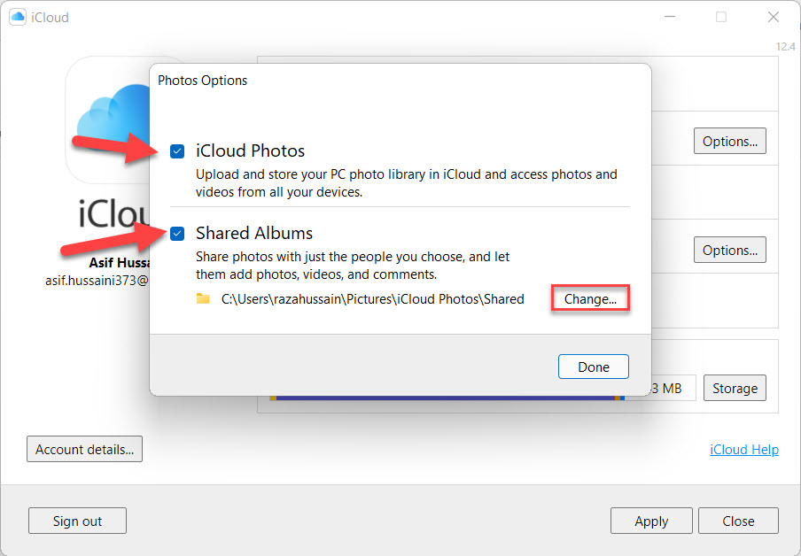 Step 6. In the option of the photo, you need to check the box of iCloud Photos and check Shared Album or you can also change the destination of the file.