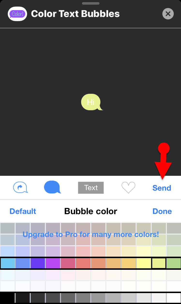 Bubble Color Remember that Color Text Bubbles on iMessage is a free app. But to get color customization in the bubbles and to change the font size and style, you need to get a paid version that costs $4.99.