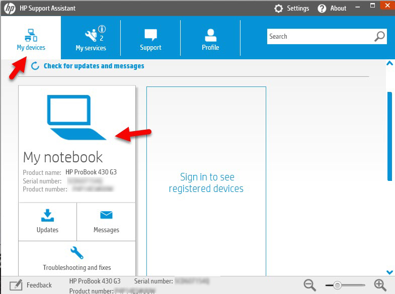 HP Support Assistant 2. When HP Support Assistant window pops up, select the My Device option from the tab and choose your laptop model from the list. And click on that.