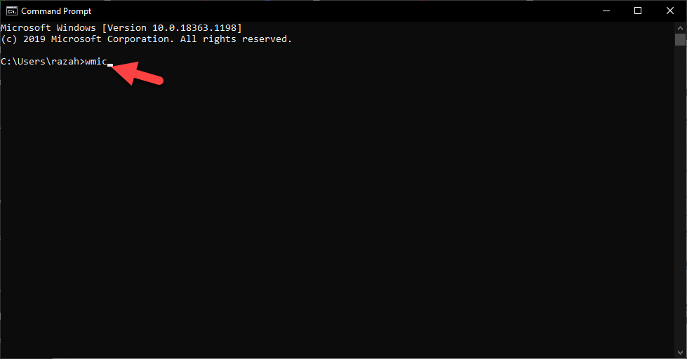 Step 2. Once the cmd is opened on your PC after that type wmic then hit the Enter button.