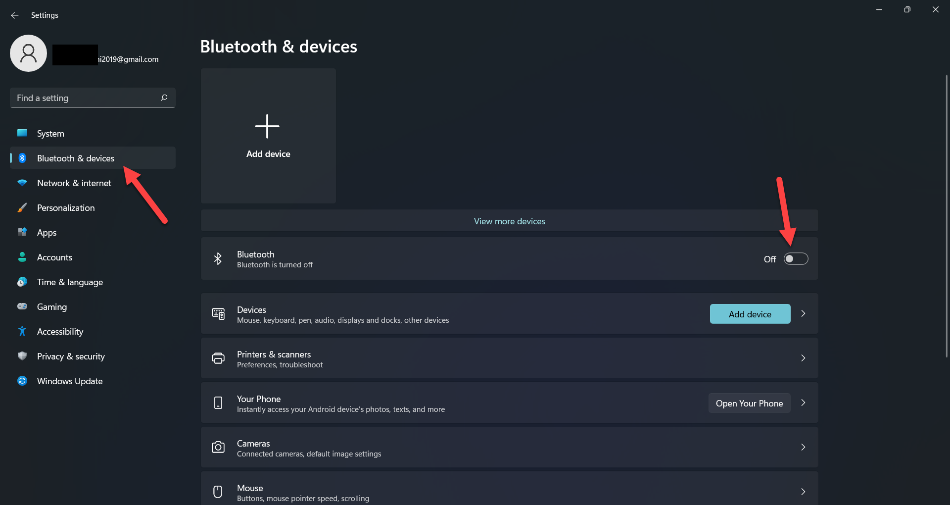 Step 2. Then go to the Bluetooth & Devices from the left side after that turn on the toggle of Bluetooth.