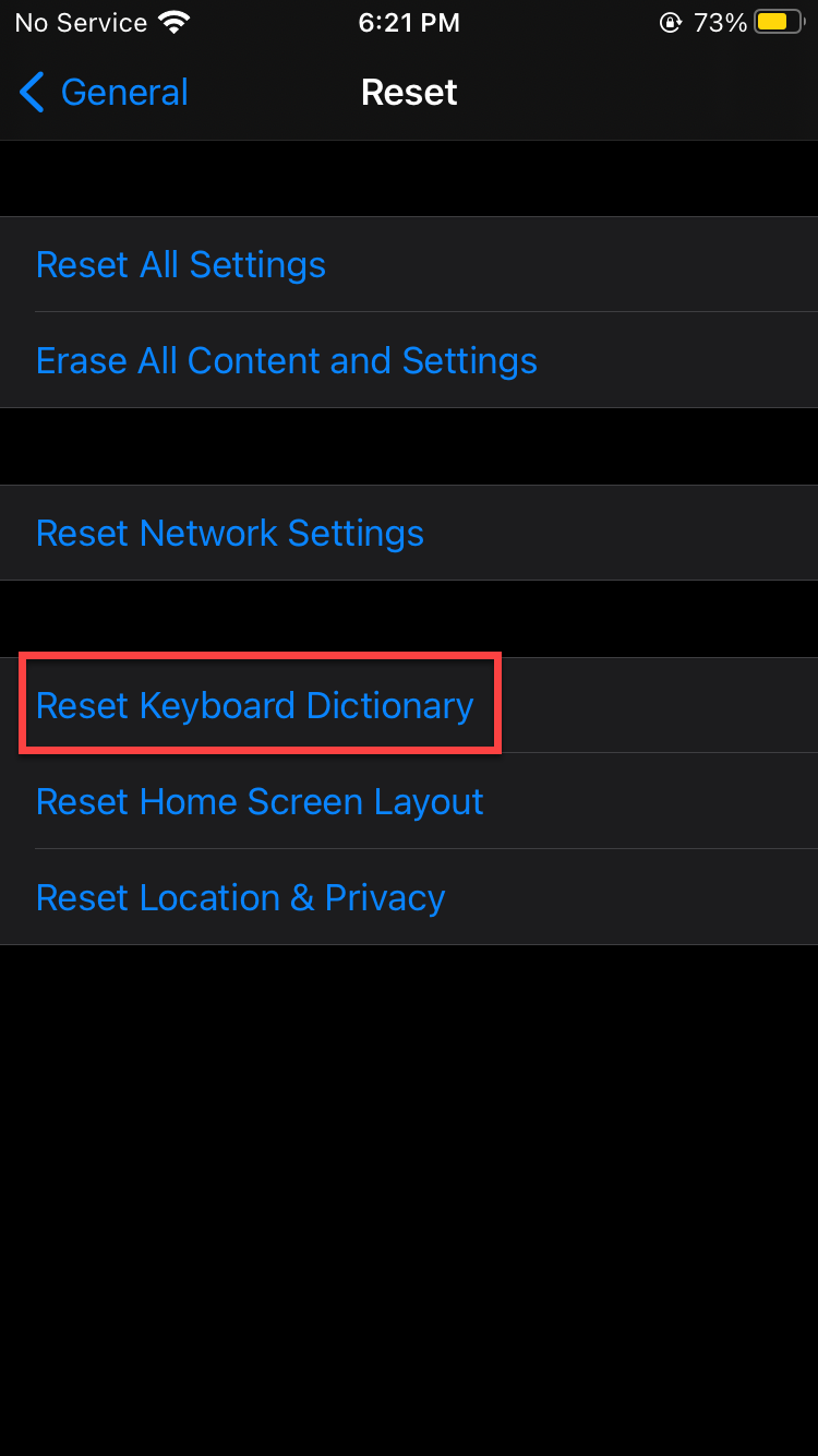 Click on the Reset Step 3. Next, you will see many links you have to click on the Reset Keyboard Dictionary.
