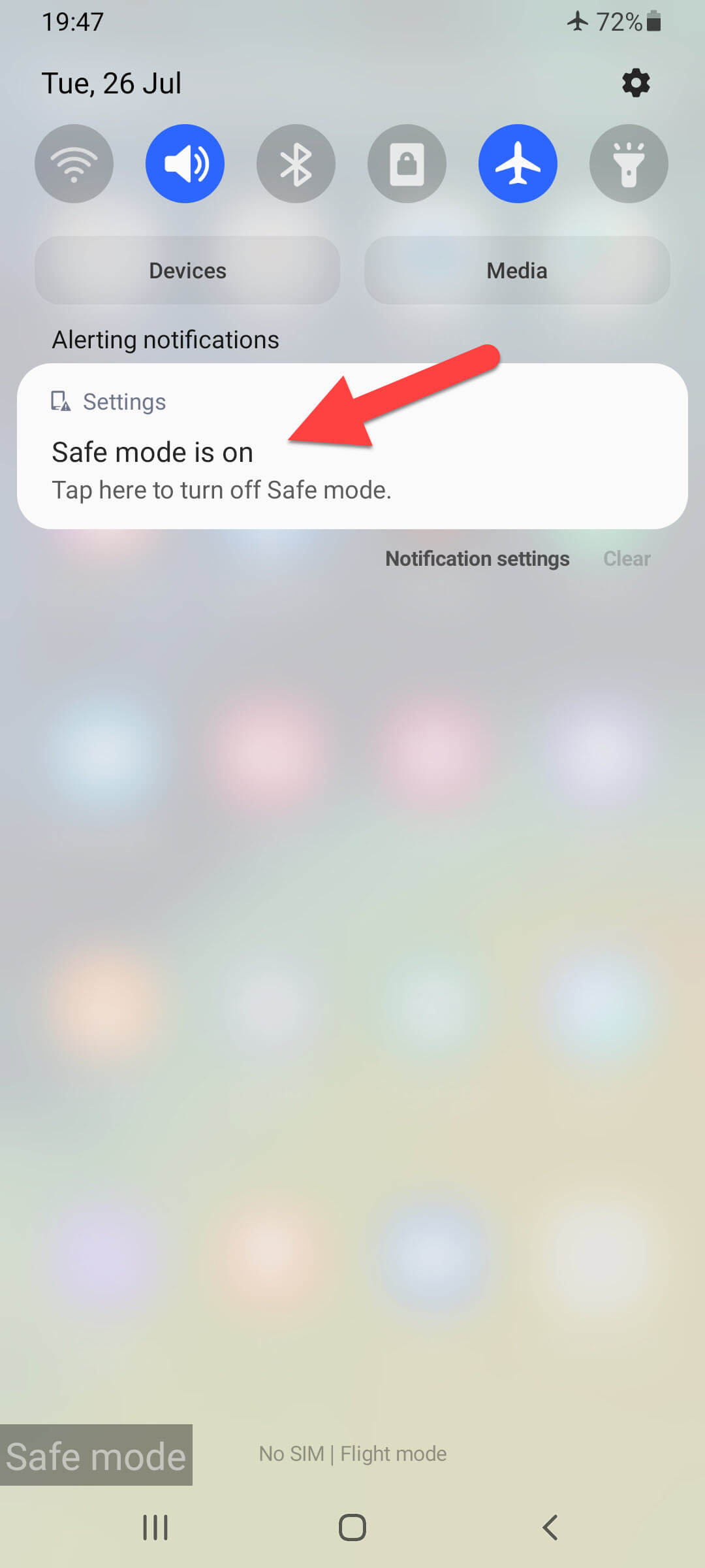 Step 1. If you have enabled Safe mode then open the Notification Bar by swiping down from the upper side.