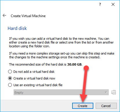Memory size Step 4. Then, you will see the hard disk window. There you will have three options so you have to select the second option which is Create a virtual hard disk now.