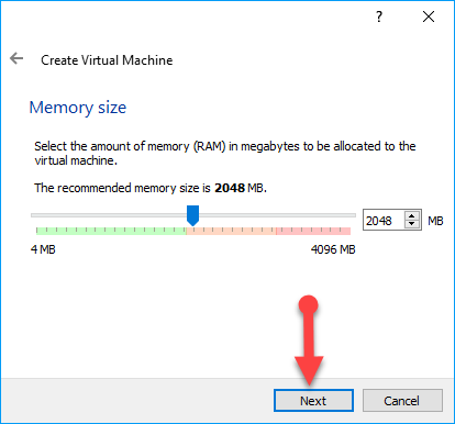 Name and operating system Step 3. In this step, you will be asked to select the amount of memory (RAM) in MB to be allocated to the virtual machine. So, now the recommended size is 2GB and it depends on your computer RAM. If it is a lot then you may choose more than 2GB.