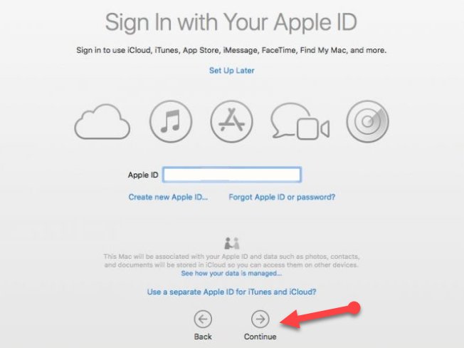 Transfer information to This Mac Step 4. Log in with your existing Apple ID account or create one apple ID for yourself if you don’t have already.