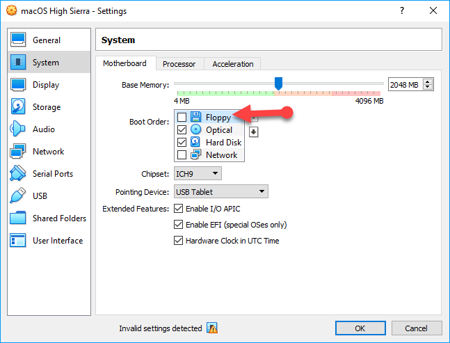 Setting Step 2. After opening the setting, open the System tab from the left side of the window, deselect the Floopy and don’t touch anything else otherwise, you may face the problem.