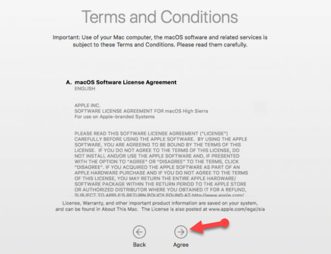 Sign In with Your Apple ID Step 5. The terms and conditions provide the license agreement if you want to read you may read the terms and conditions or click on the Agree.