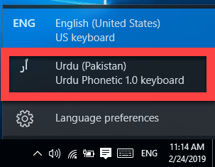 Note: You are also changing the keyboard by press Windows key + Space. It will change from English to Urdu and again press Windows Key + Space. It will change from Urdu to English. And you can change the keyboard by simply these shortcuts.